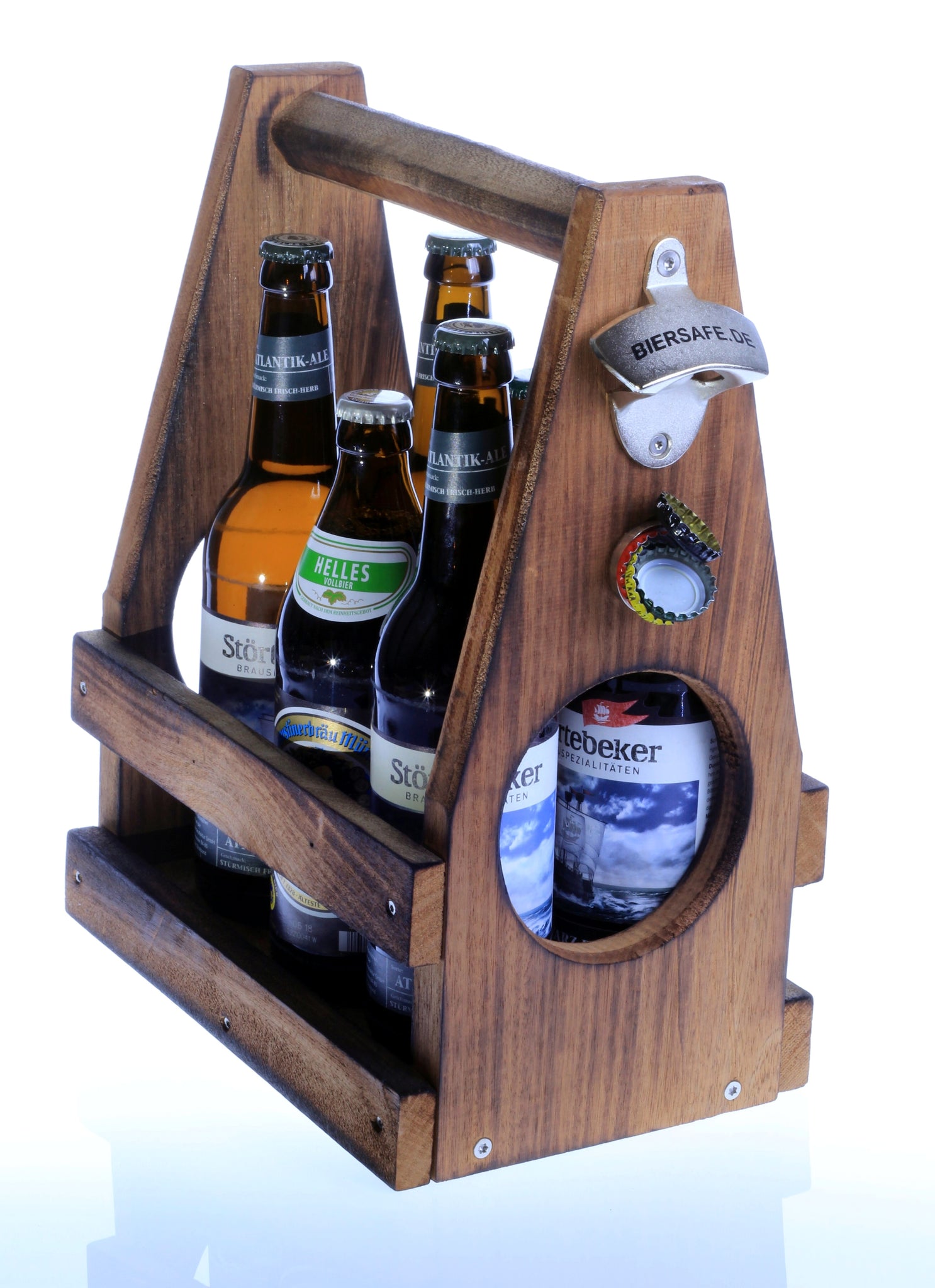 • Massiver Holz-Bierträger aus Schiffsholz für 6 x 0,5 L oder 8 x 0,3 L Flaschen